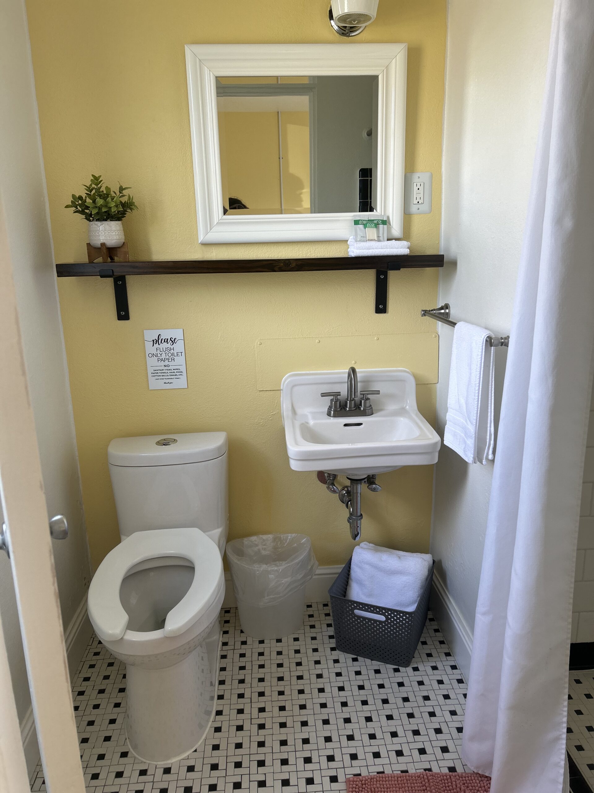 The room was great, it smelled like peppermint when we walked in! It’s decorated nicely, very clean and we felt very safe. I absolutely love the older details they kept like the bathroom light and shower tiles. You can tell the upgrades theyve put in are quality. Lovely sink, toilet, tv, mattress, fridge..even the sheets were cute!